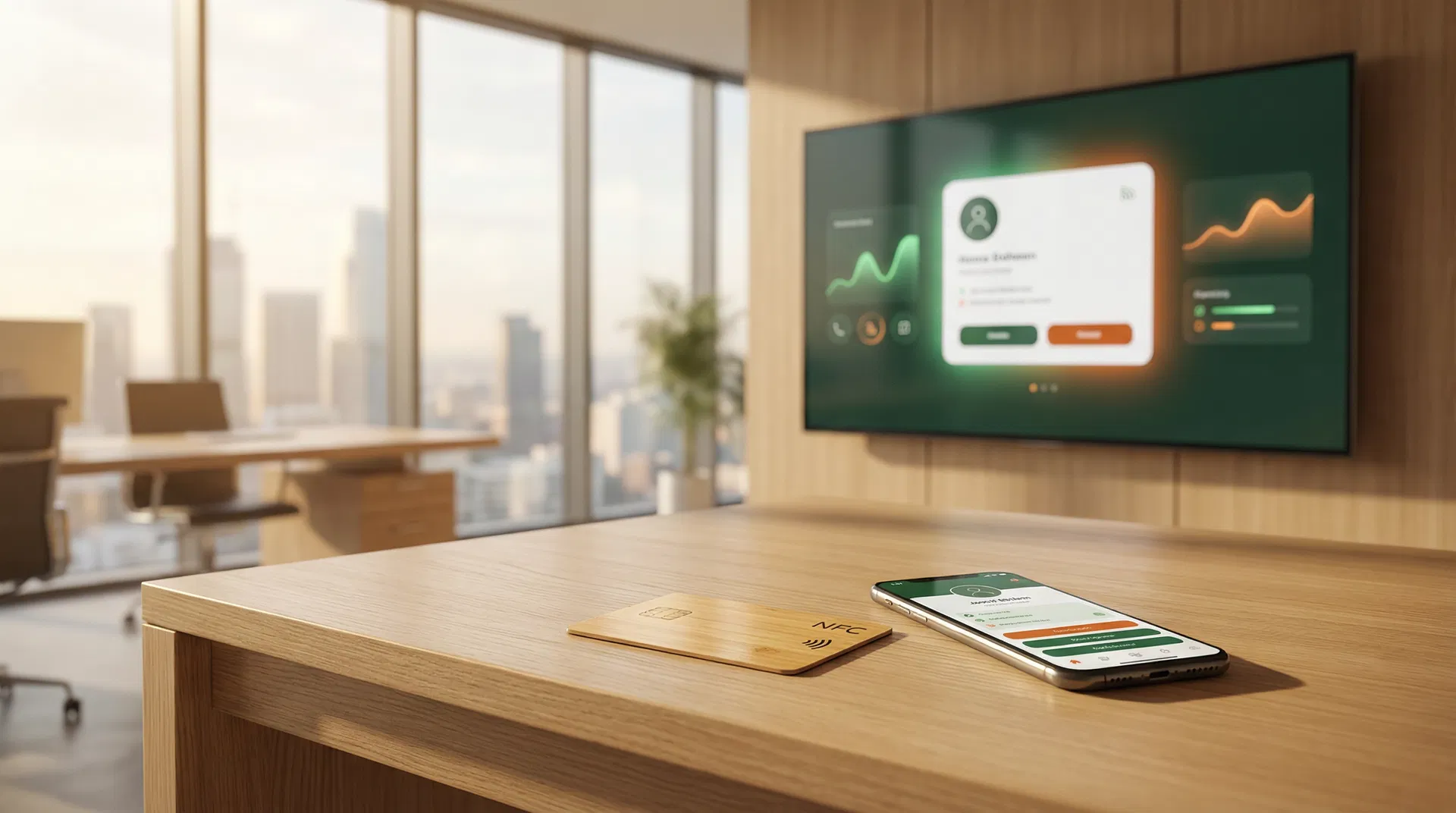Nachhaltige NFC-Bambuskarte, bedruckt mit BKW Logo, Name und QR-Code. Inkl. Programmierung.
